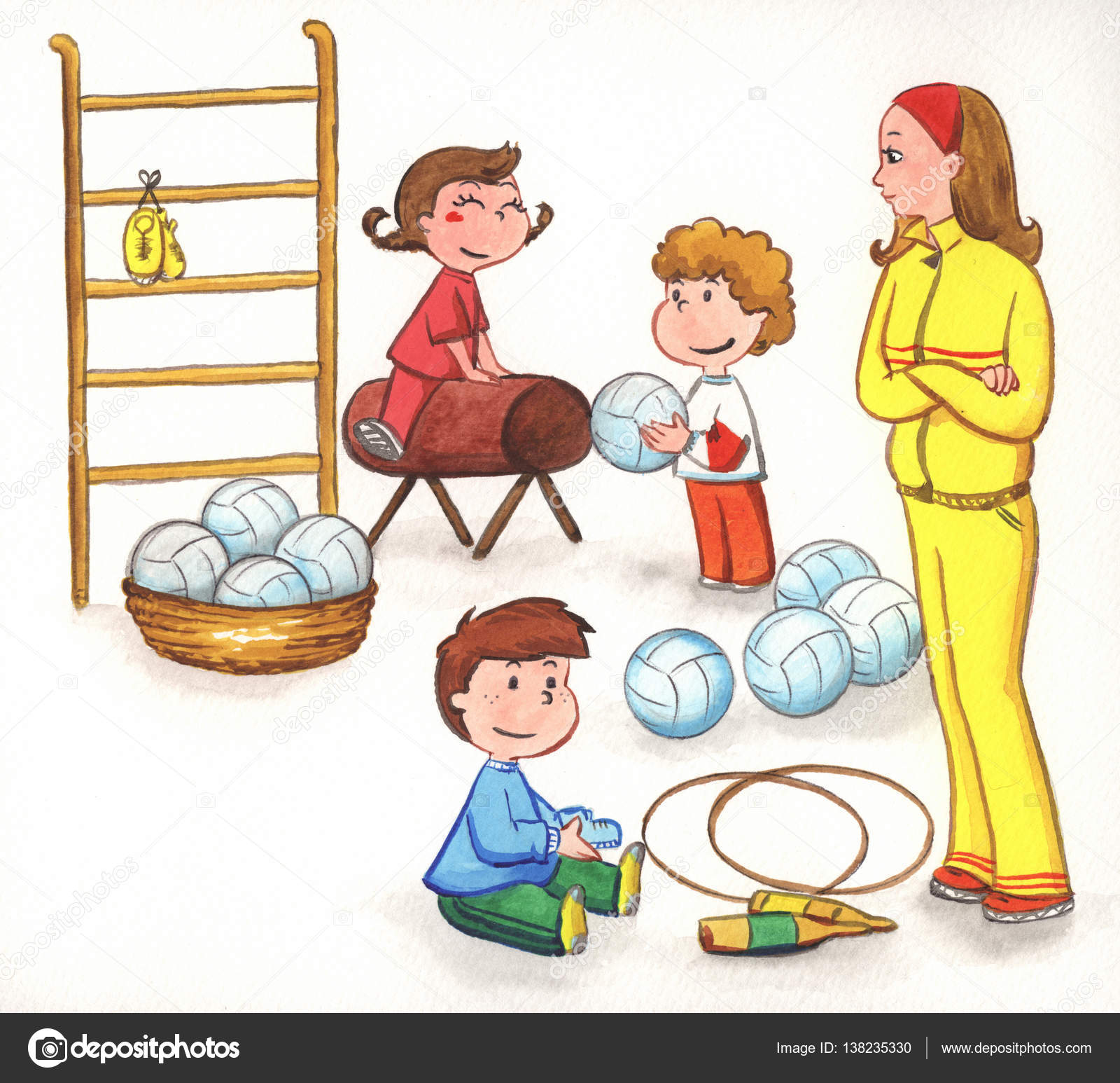 Teacher With Kids In Gym Stock Photo C Carlacastagno - Download