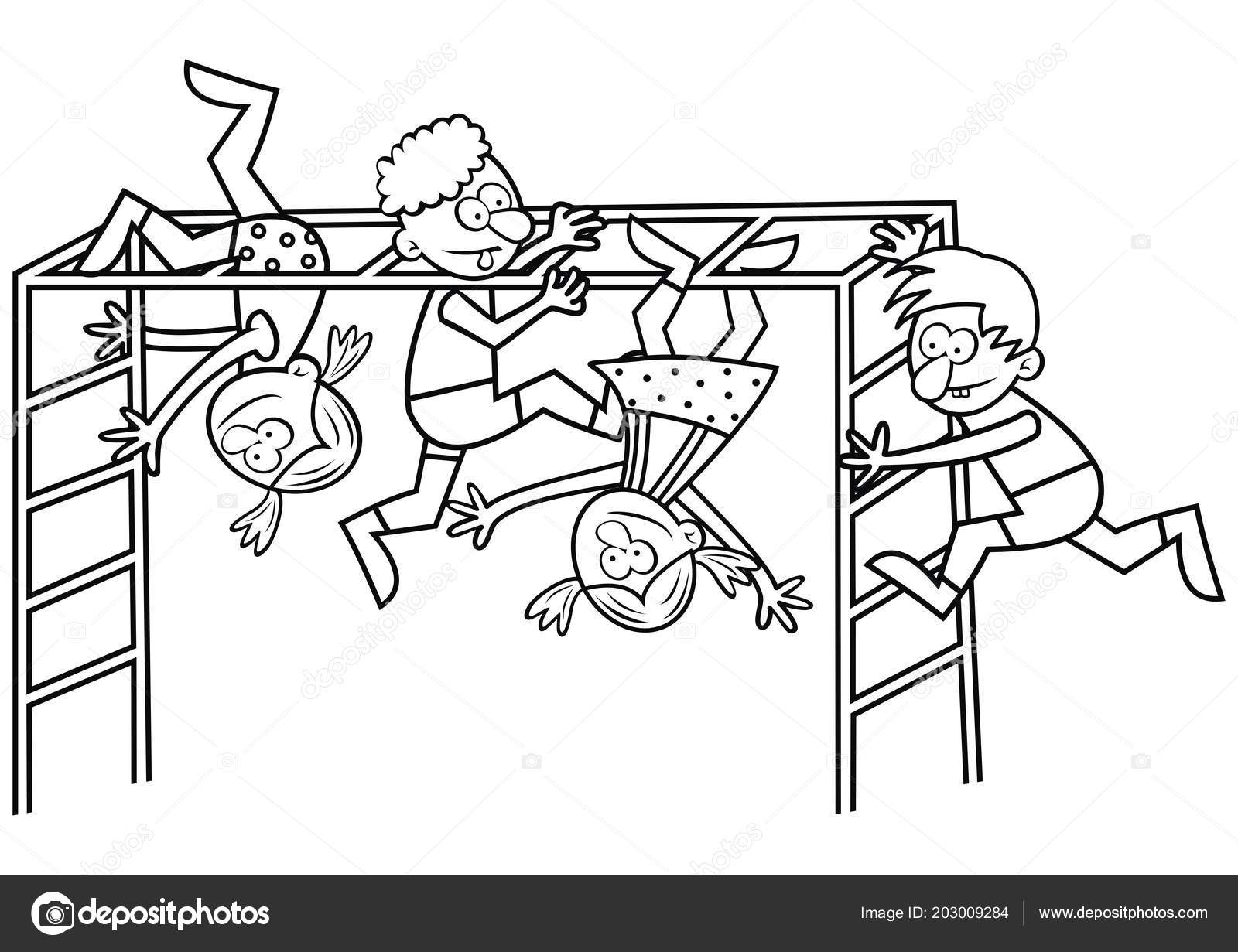 Illustrazione Da Colorare Di Bambini Che Giocano In - Download