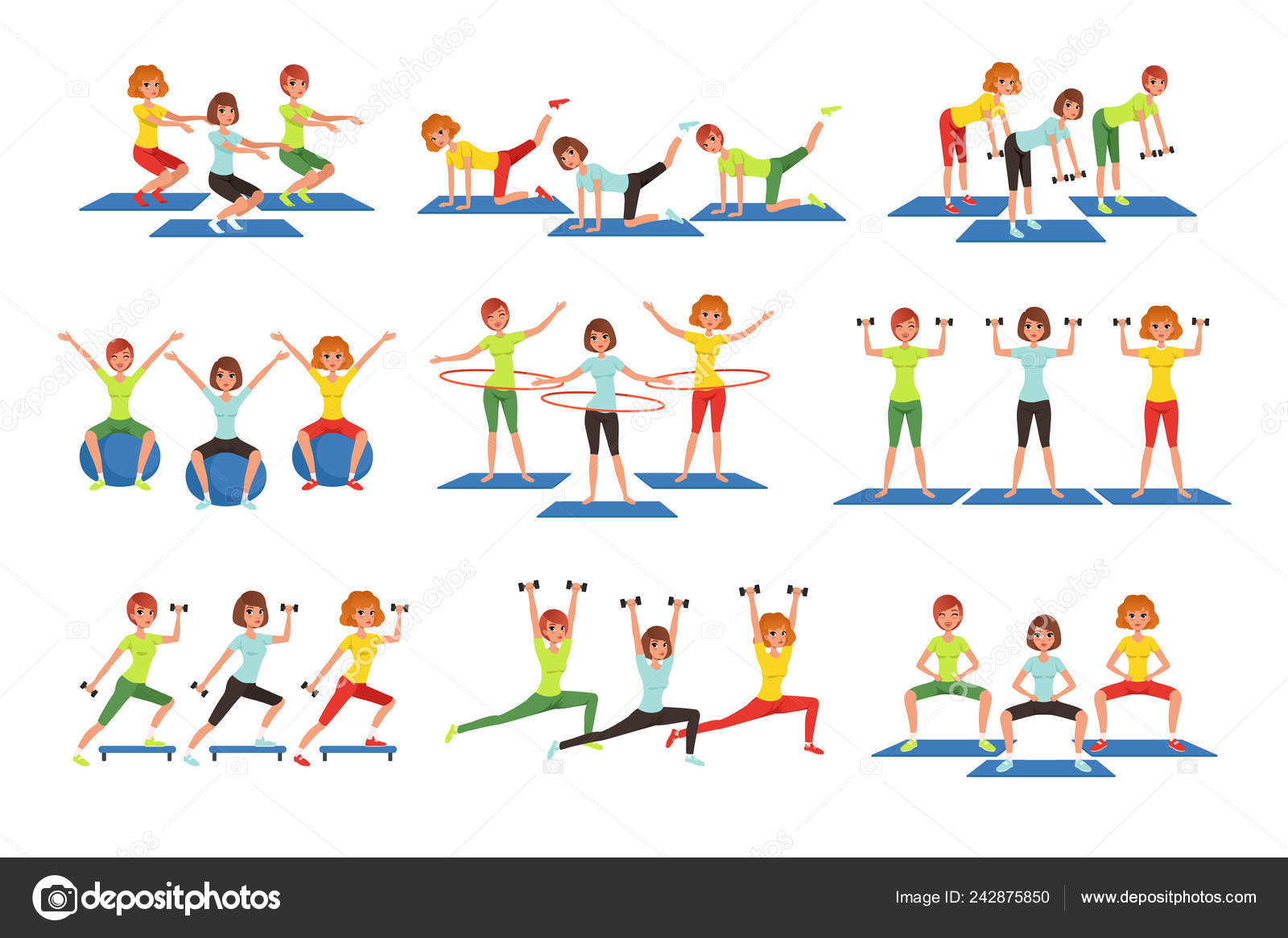 Insieme Di Persone Che Lavorano In Palestra Giovani Ragazze - Download