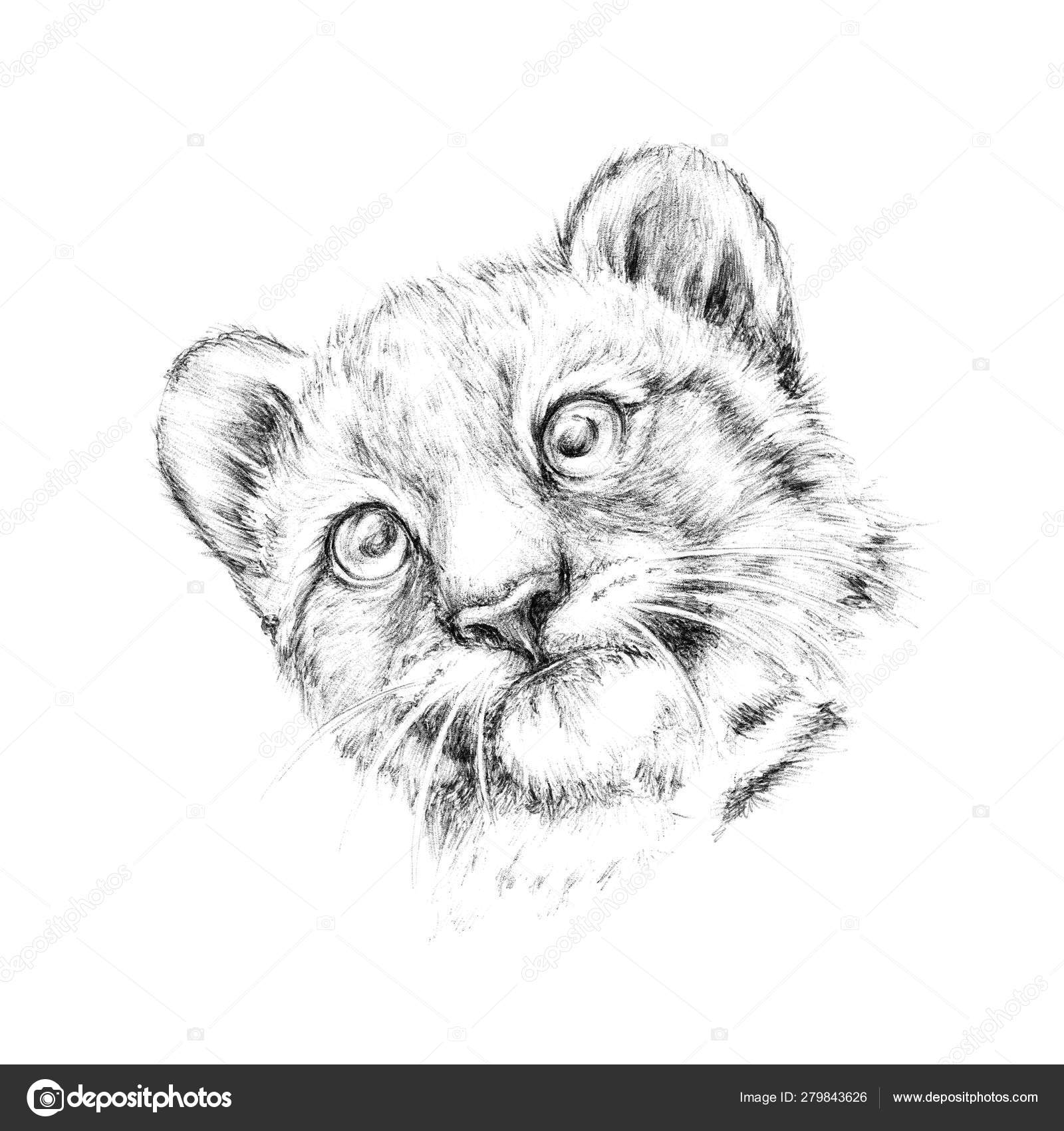 Sketch Ritratto Testa Leone Cucciolo Schizzo Foto Stock - Download