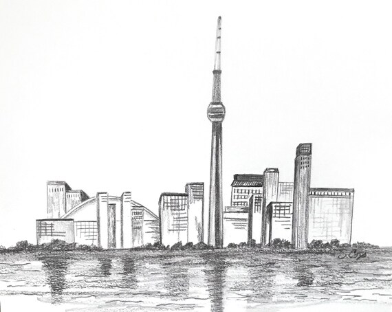Architettura Disegno A Matita Arte Di Paesaggio Urbano Urban Schizzo Disegno Dell Orizzonte Di Toronto Cn Torre Canada Stampa - Download