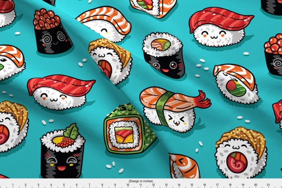 Sushi Fabric Cute Kawaii Sushi By Penguinhouse Sushi Japanese Rice Roll Sashimi Food Seafood Cotton Fabric By The Yard With Spoonflower - Download