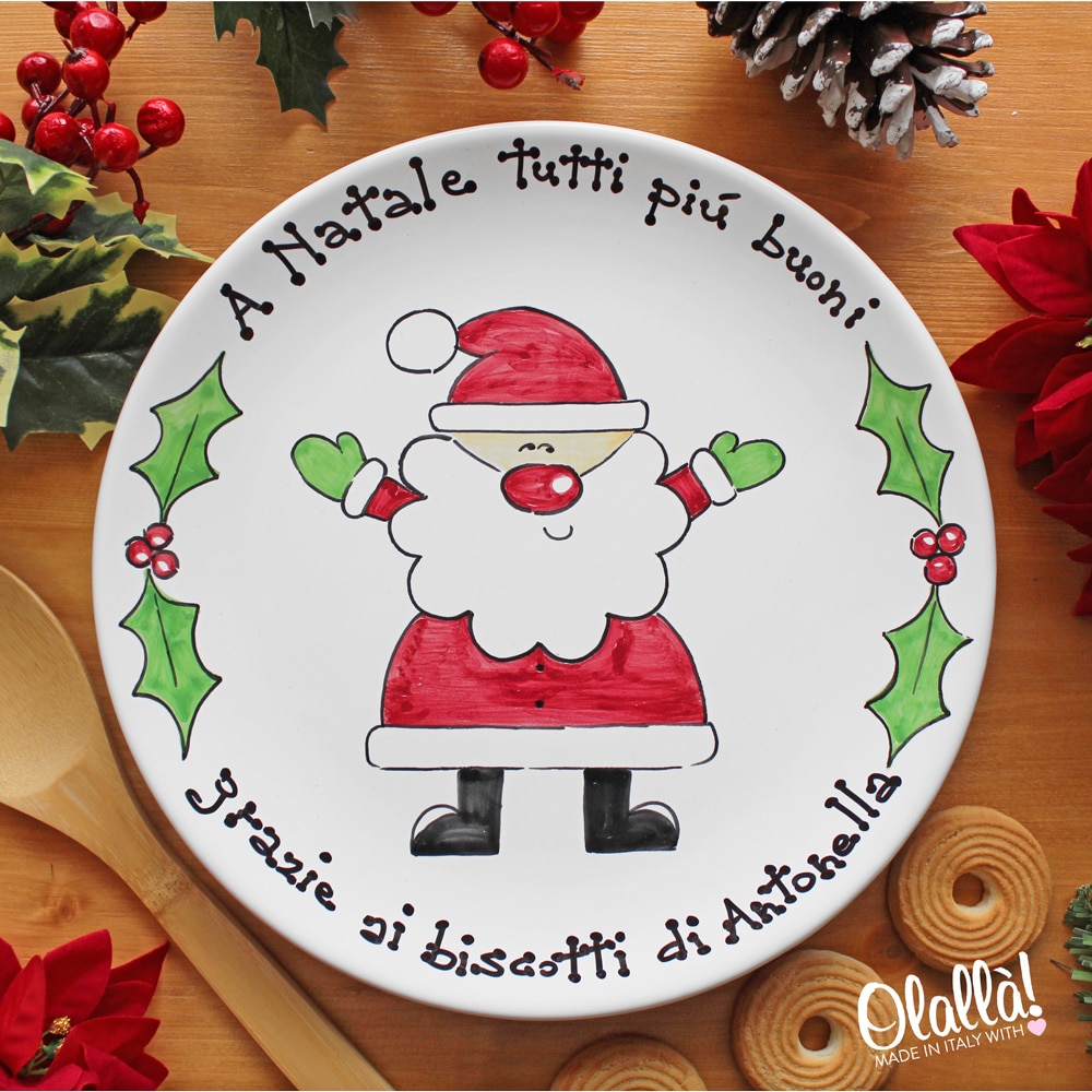 Piatto In Ceramica Dipinto A Mano Personalizzato Con Le Tue Parole E Babbo Natale Regalo Natale Olalla - Download