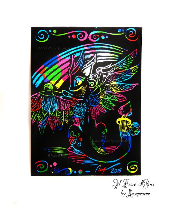 Drago Alato Con Arcobaleno Disegno Illustrazione Fantasy Originale Su Cartoncino Nero Vellutato Leggenda Mito Collezione Aladoro Ooak - Download