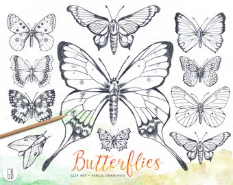 Farfalle Matita Disegnati A Mano Vintage Ispirato Disegni Etsy - Download