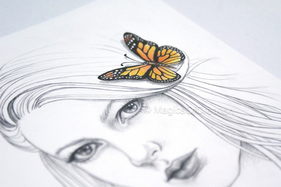 Arte Della Parete Originale Disegno Di Una Ragazza E Farfalla Fantasy Unico Tavolo Arredamento E Decorazioni Per La Casa Quando Incorniciato - Download