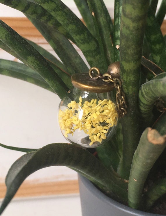Collana Gialla Con Fiori Veri Esseccati Collana Blu Lunga In Vetro Collana Colorata Collana Personalizzata - Download