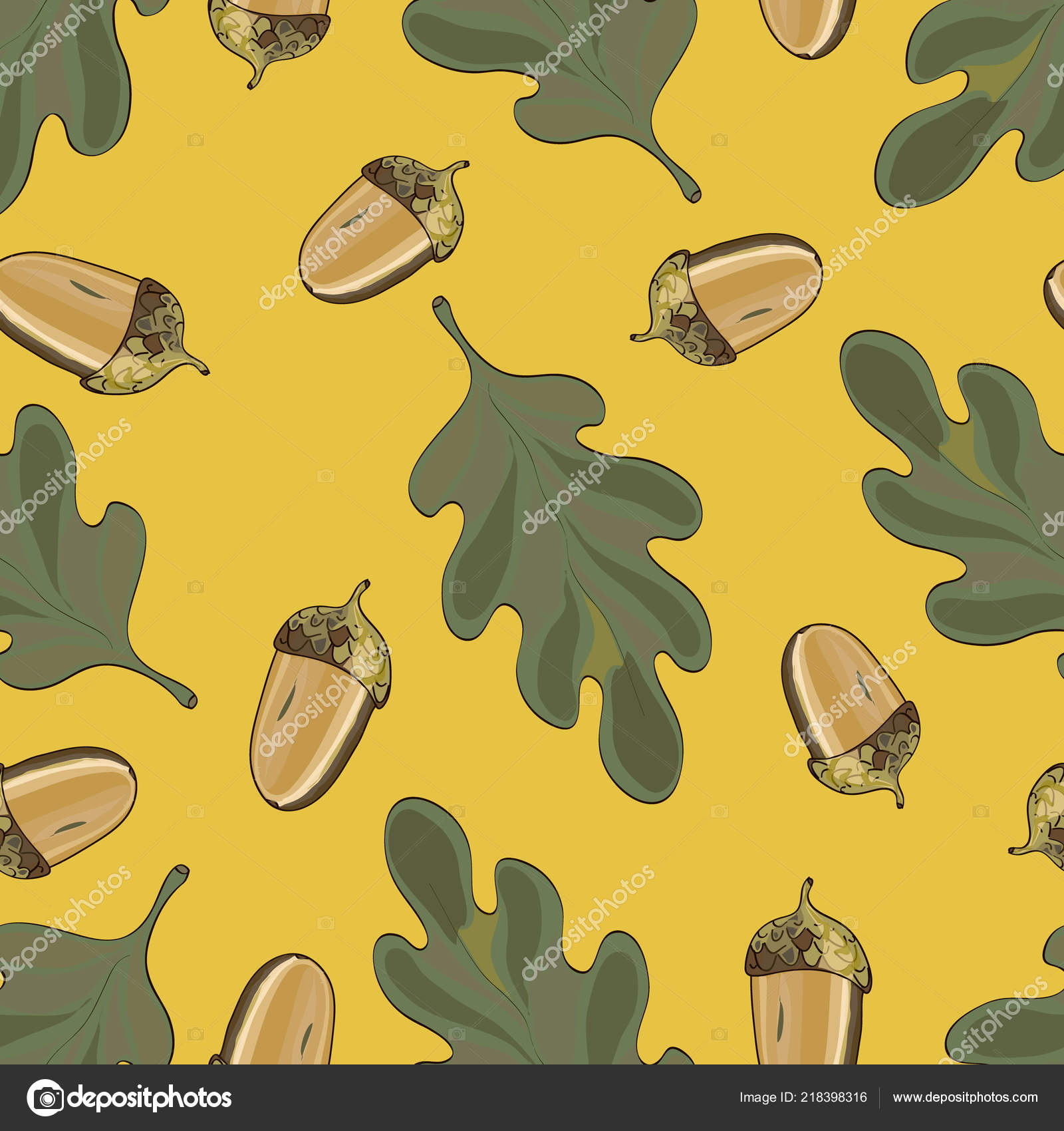 Foglie E Ghiande Della Quercia Dell Acquerello Modello Senza - Download