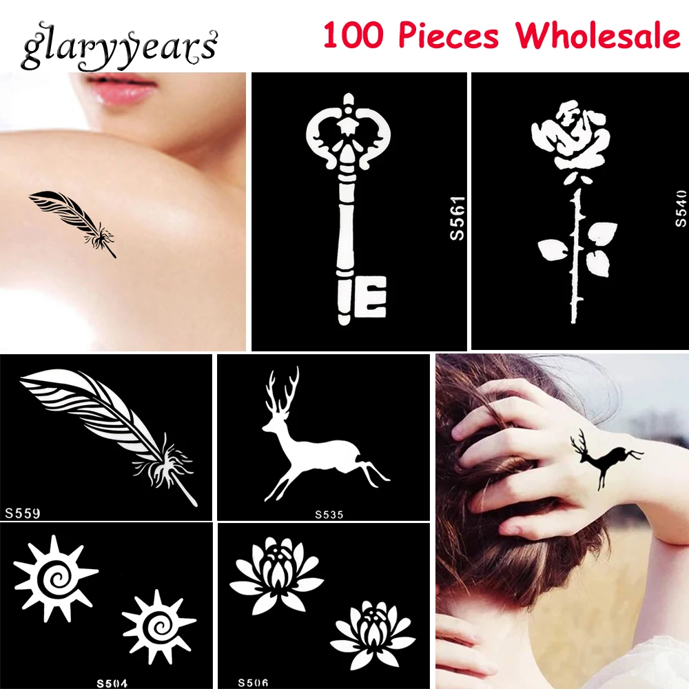 Us 35 99 100 Pezzi Commercio All Ingrosso Di Piccola Henne Indiano Del Corpo Del Tatuaggio Stencil Airbrush Pittura Pasta Di Disegno Fai Da Te Arte - Download