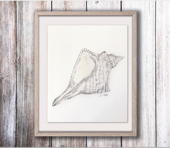 Stampa Conchiglia Del Mare Disegno A Matita Stampa In Bianco E Nero Arte Della Parete Nautica Arredamento Costiero Di Illustrazione Conchiglia - Download