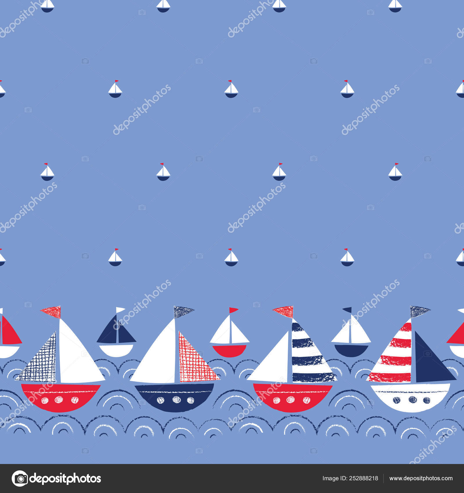 Whimsical Disegnato A Mano Delle Navi Del Mare Bordo Senza - Download