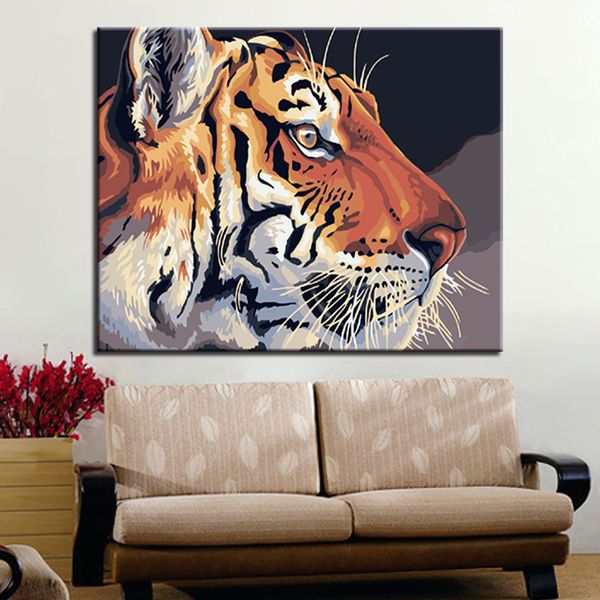 Acquista Dipinto Ad Olio Con Numeri Fai Da Te Tiger Immagini Di Animali Kit Disegno Colorare Gli Occhi Bramosamente Su Tela Dipinta A Mano Home Decor - Download