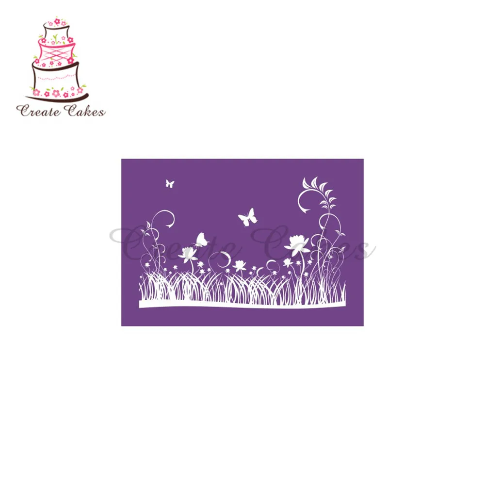 Us 9 36 40 Di Sconto Farfalle Che Volano E Erba Stencil Per La Progettazione Della Torta Del Fondente Di Nuovo Disegno Della Maglia Torta Stencil - Download