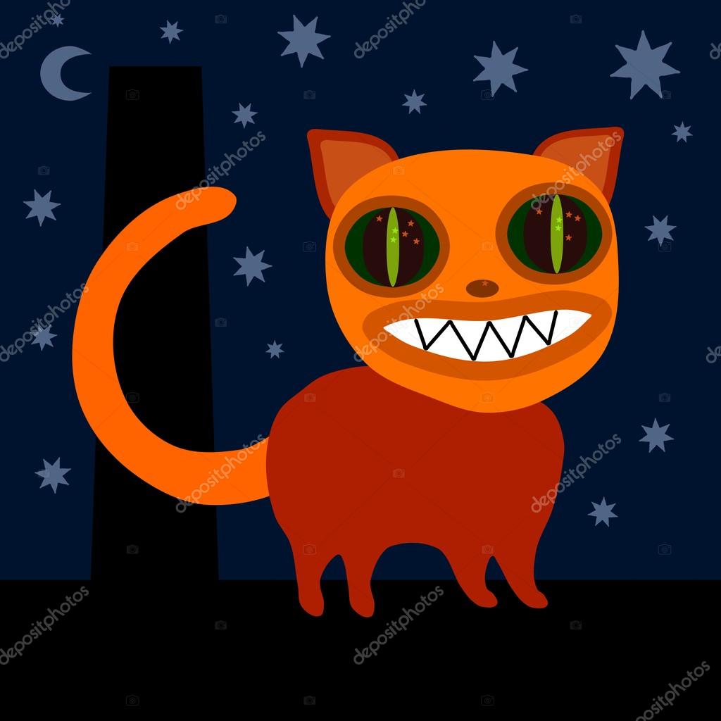 Gatto Di Mostro Sul Tetto Di Notte Vettoriali Stock - Download