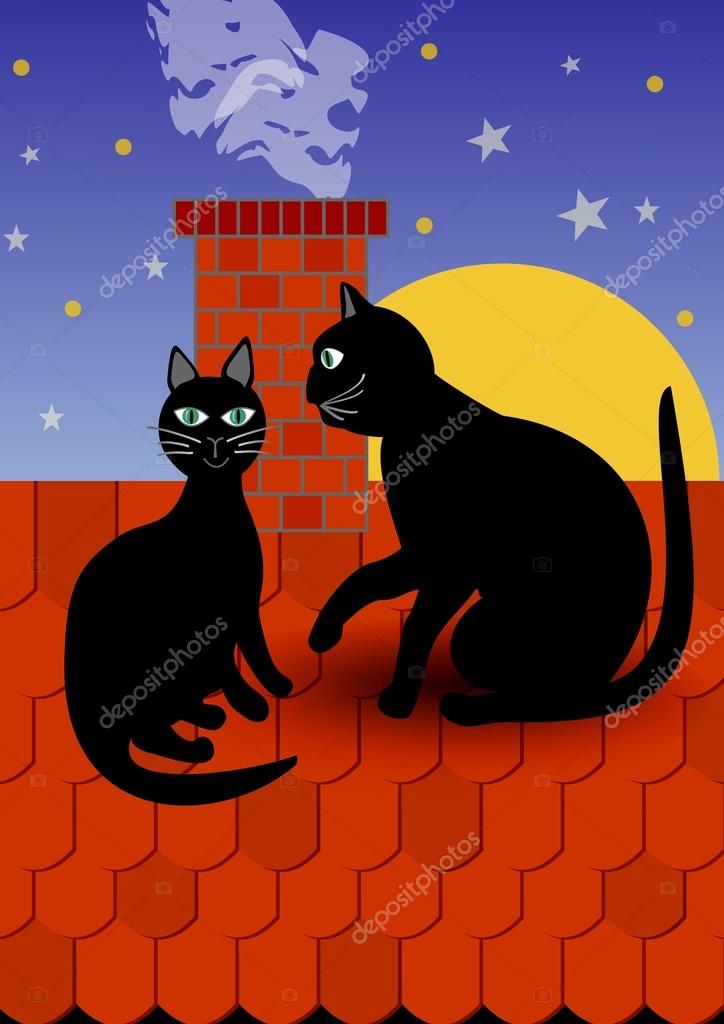 Vettore Di Gatti Sui Tetti Gatto Nero Con Tomcat Dal - Download