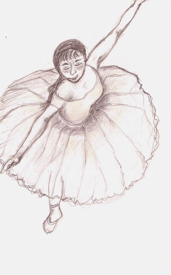 Ballerina Original Art Study Mixed Media Drawing After Edgar Degas - Download