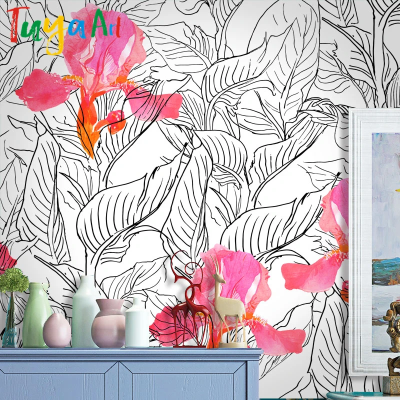 Us 15 95 43 Di Sconto Spedizione Gratuita Semplice Disegno A Matita Schizzo Fiori Carta Da Parati Moderno Stile Minimalista Divano Tv Muro Sfondo - Download