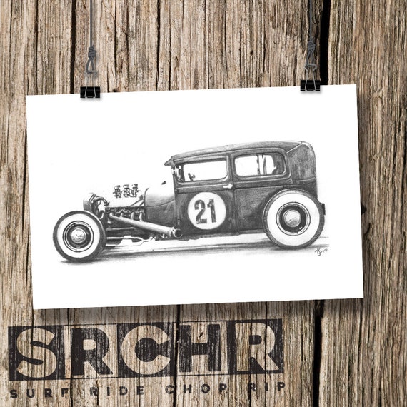 Arte Stampa Numero 21 Hot Rod Disegno A Matita - Download