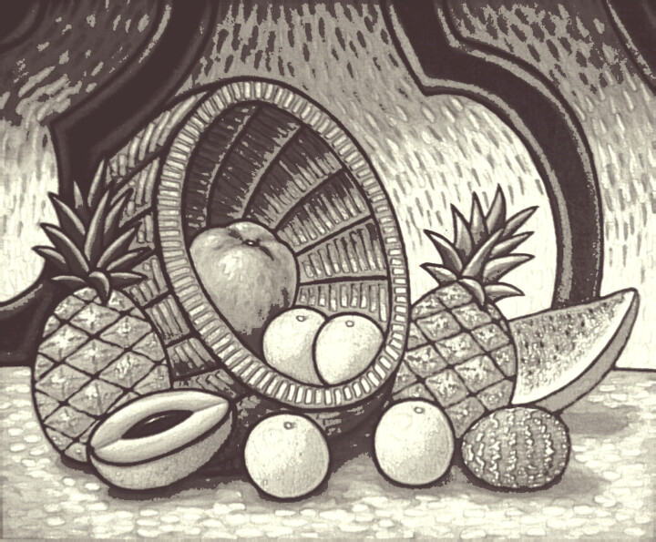 Illustrazione Natura Morta Con Frutta Bianco E Nero - Download