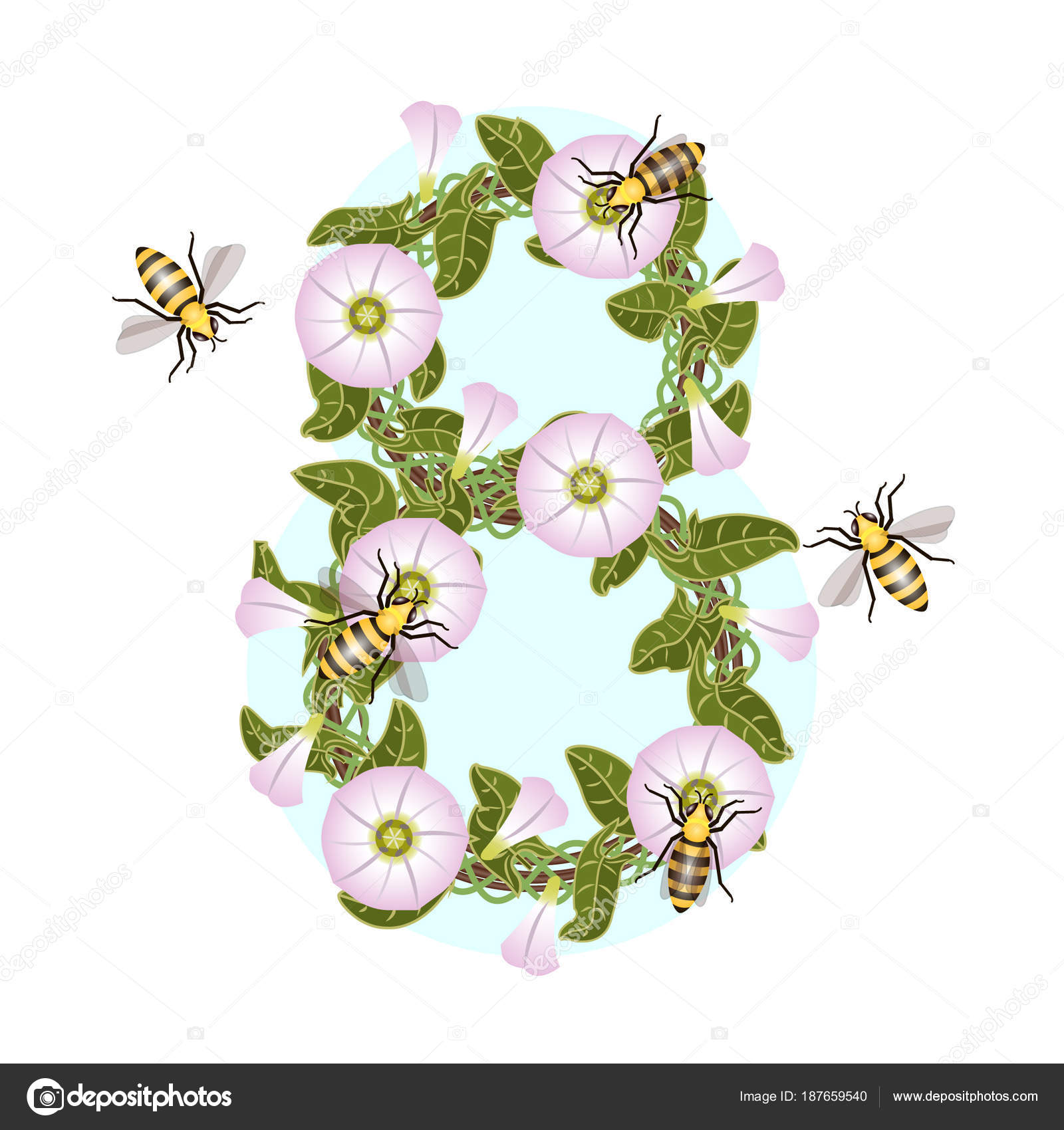 Isolato Di Api E Fiori Disegno Su Fondo Bianco Vettoriali - Download