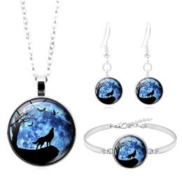 Lupo Che Ulula Alla Luna Jewelry Foto Cabochon Di Vetro Imposta Dell Orecchino Del Braccialetto Della Collana Di Modo Argento Dei Monili Per Le Donne - Download
