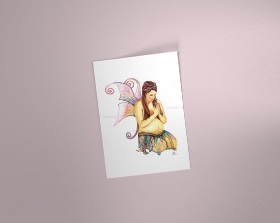 Stampa Di Fata Incinta Disegno A Matita Acquerello Ginocchio Pregando Mamma Fata Illustrazione In Attesa Di Un Bambino Gravidanza - Download