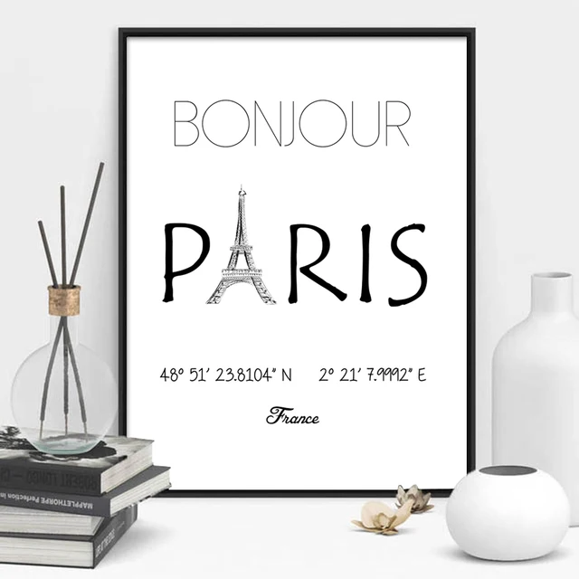 Us 4 27 27 Di Sconto Semplicita Moderna Stampa Su Tela Pittura Di Arte Poster Bonjour Paris Frameless Immagine Della Parete Di Disegno A Mano Torre - Download