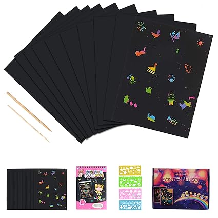 Fogli Di Disegni Scratch Art Jbson 50 Fogli Arcobaleno Da Grattare Set Artistico Colorato Da Scarabocchiare Con 4 Modelli Di Disegno Su Righelli - Download