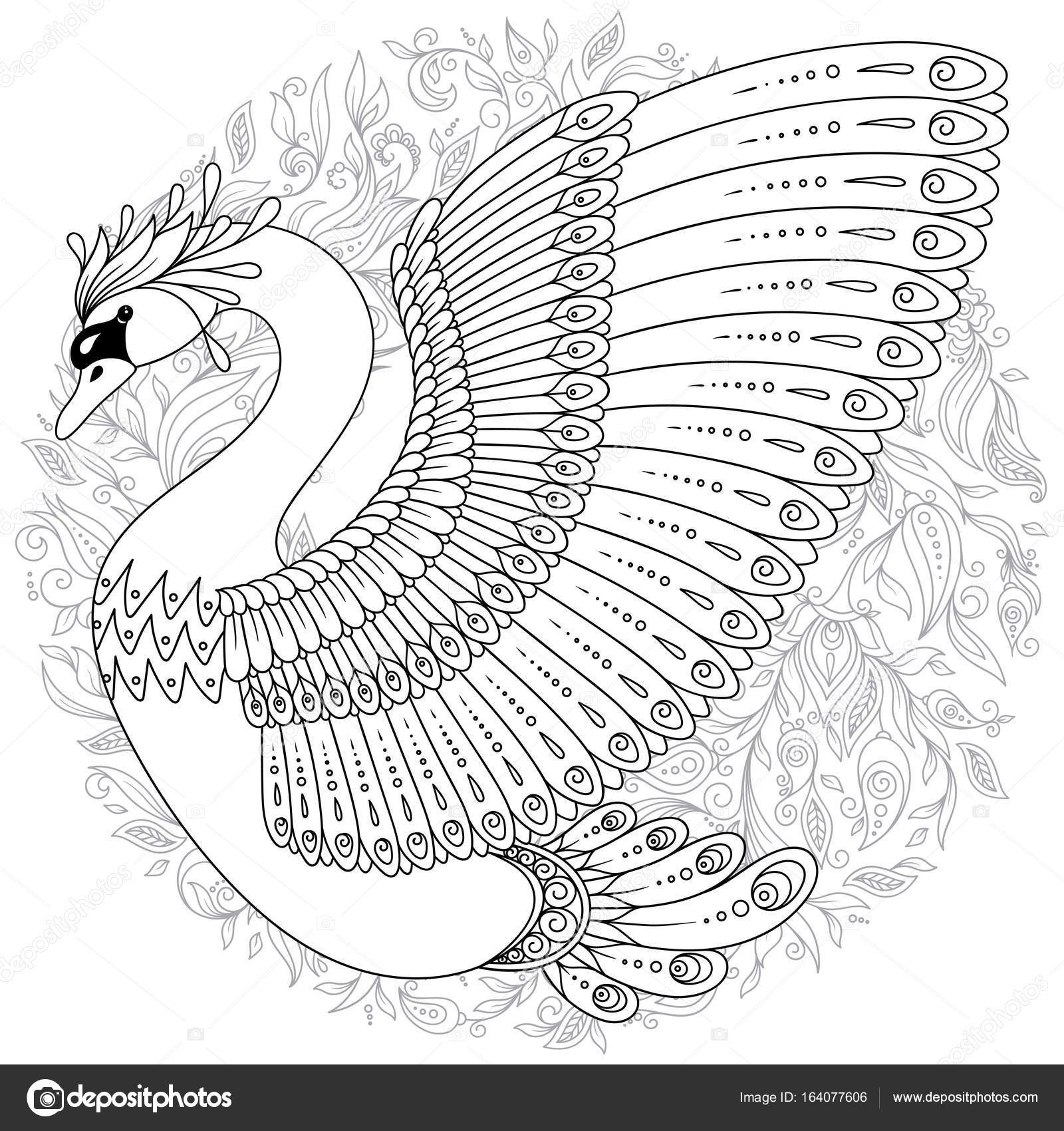 Disegni Da Stampare Cigno Cigno Decorato A Mano Disegnato - Download