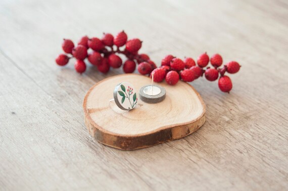 Orecchini Di Carta A Perno Con Disegno Botanico Invernale Di Bacche Rosse E Foglie - Download