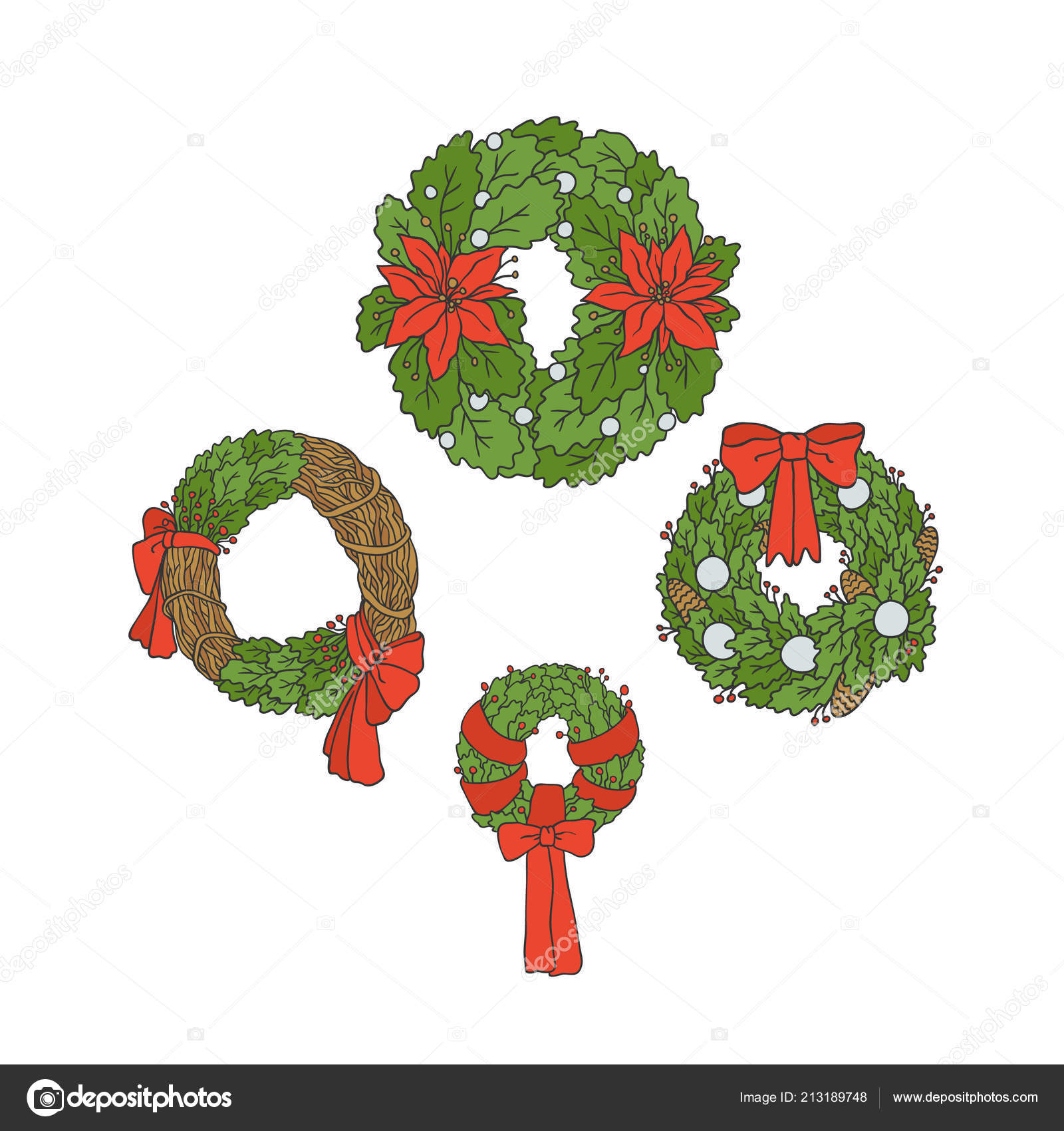 Vector Set Natale Corone Di Foglie Fiori Bacche E Nastri - Download