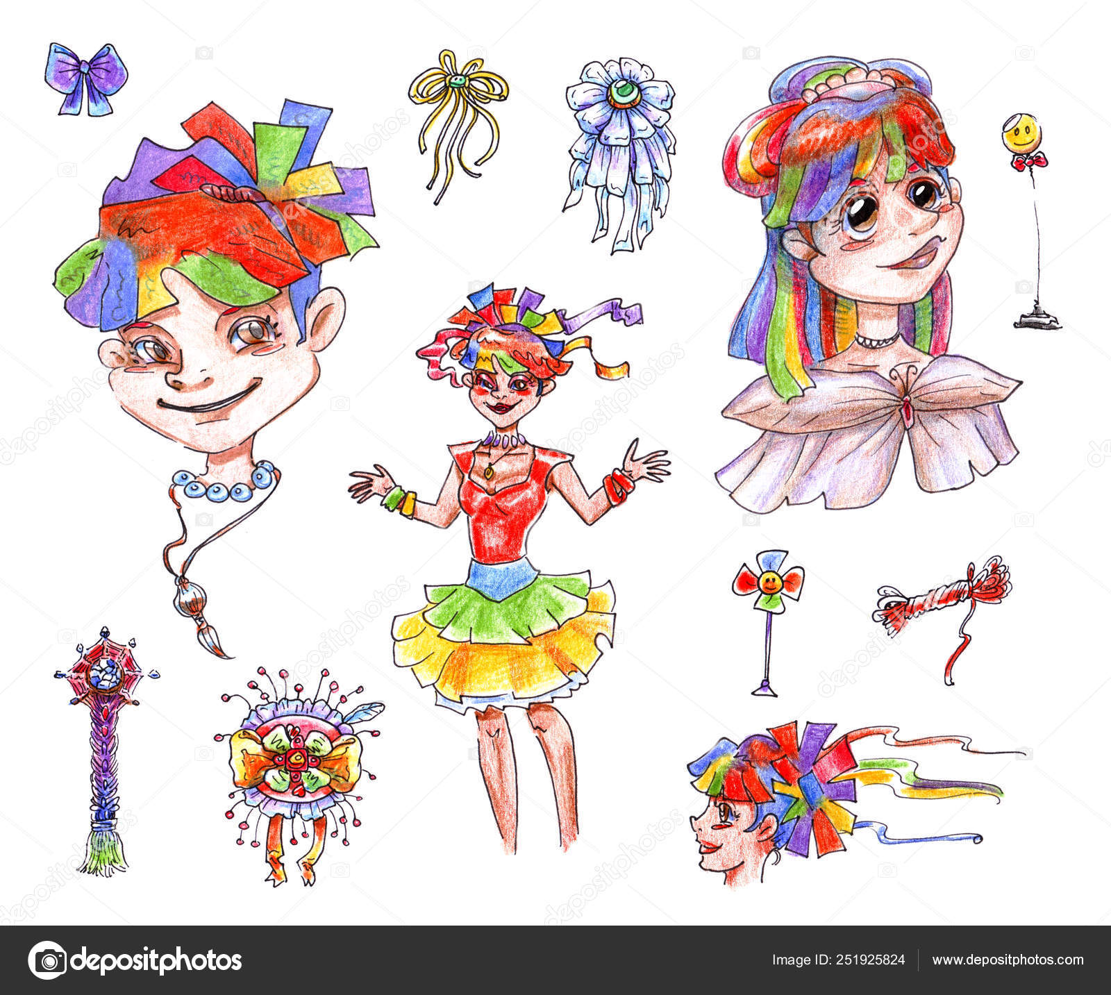 Set Di Isolato Su Disegni Di Sfondo Bianco Di Un Ragazze - Download