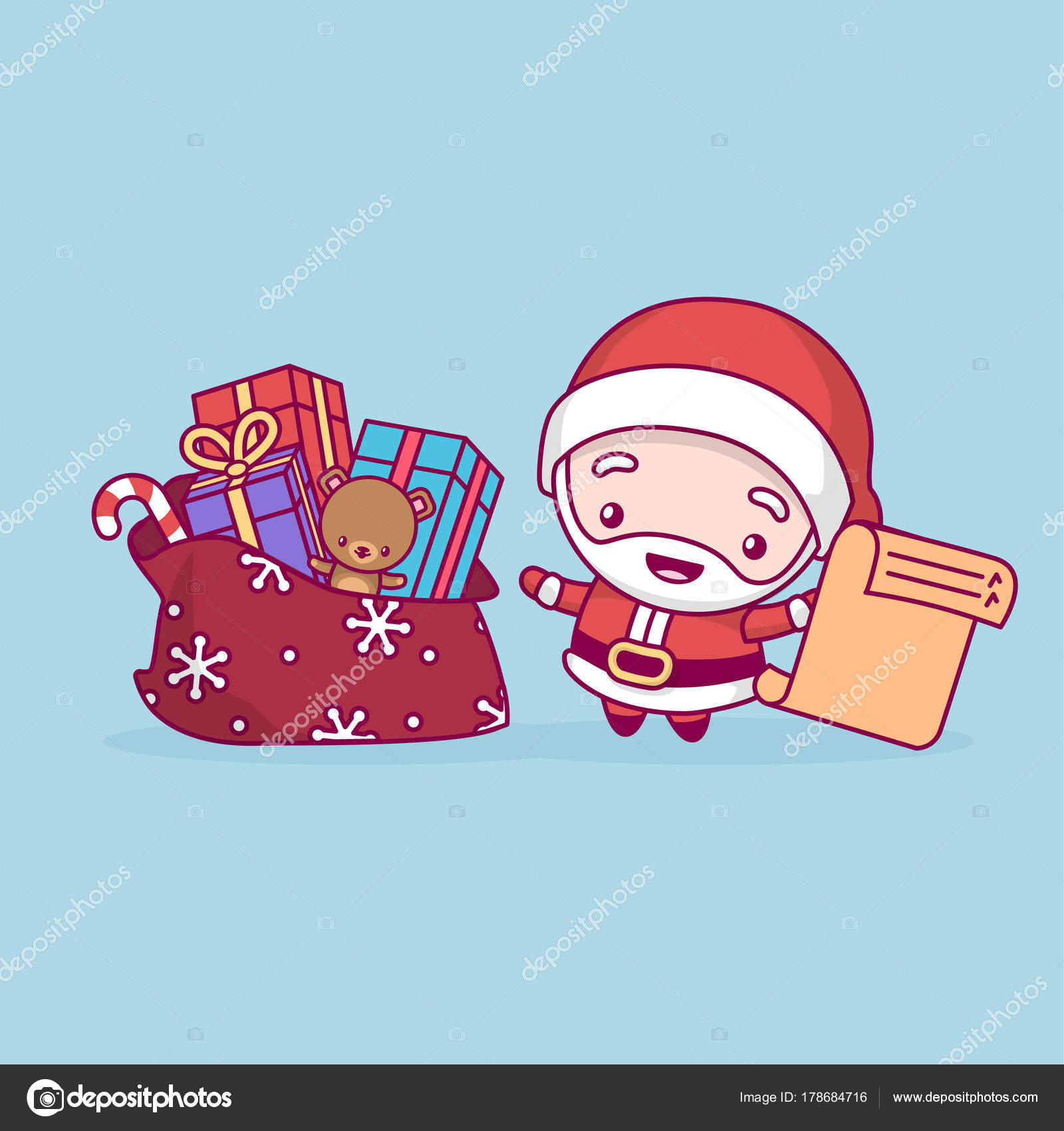 Bella Kawaii Cute Chibi Babbo Natale Si Rallegra Con Un - Download