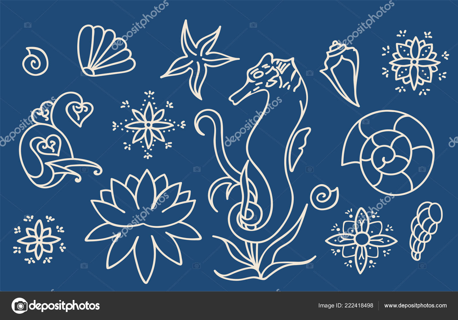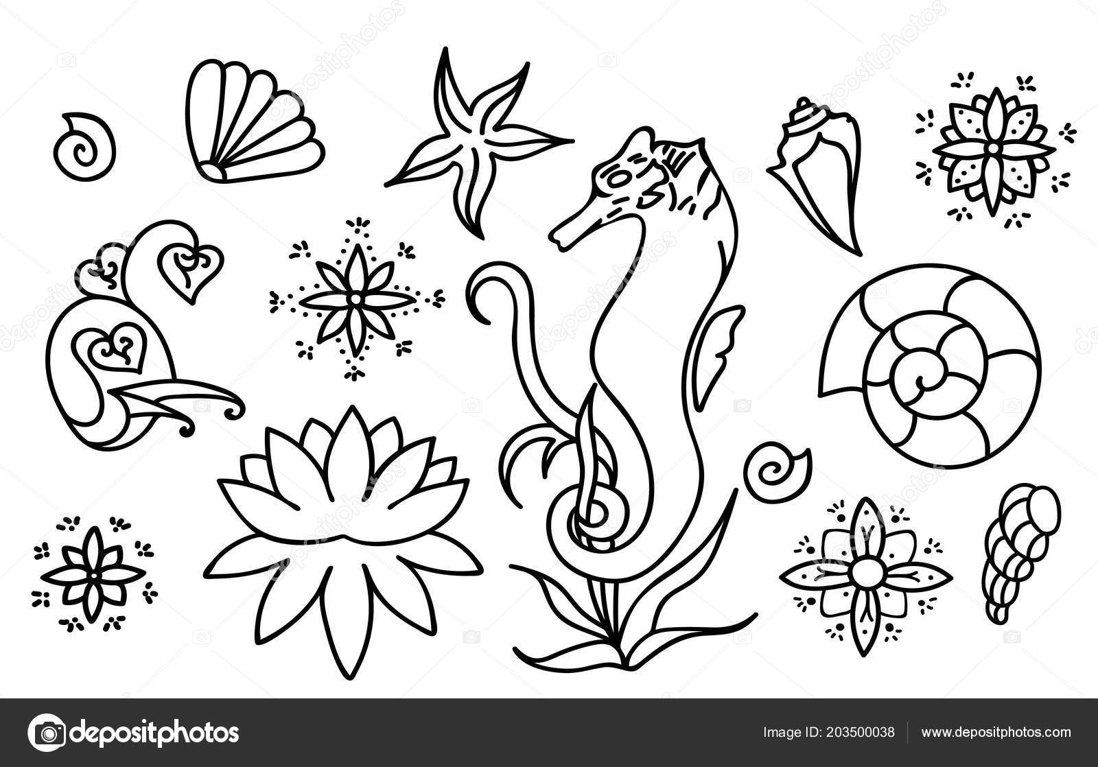 Cavallo Mare Conchiglie Elementi Doodle Accumulazione Vita - Download