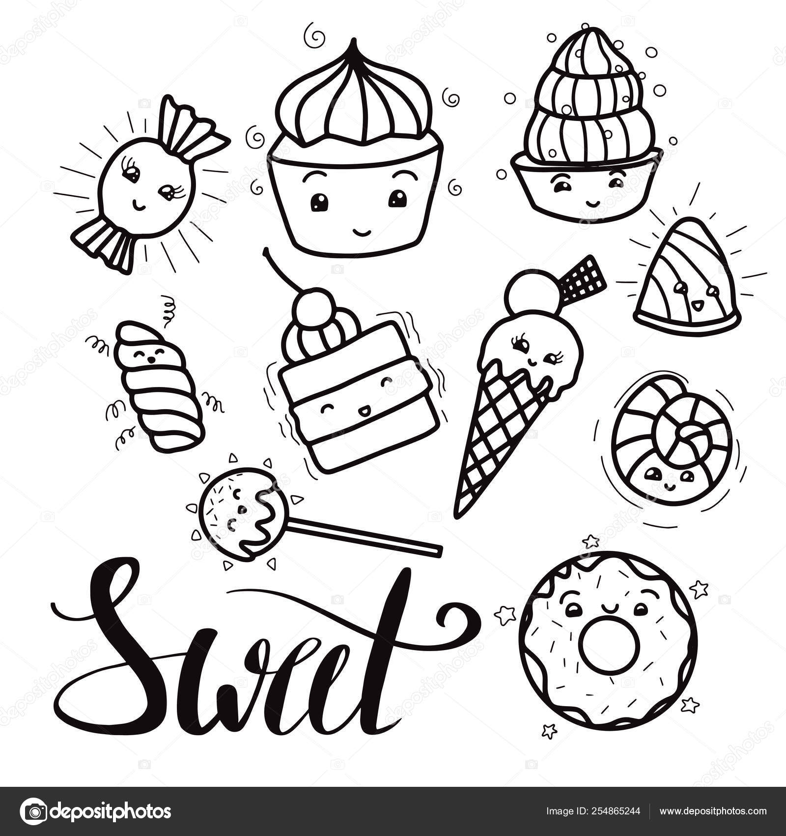 Candy E Fumetto Di Kawaii Dei Dessert In Bianco E Nero - Download