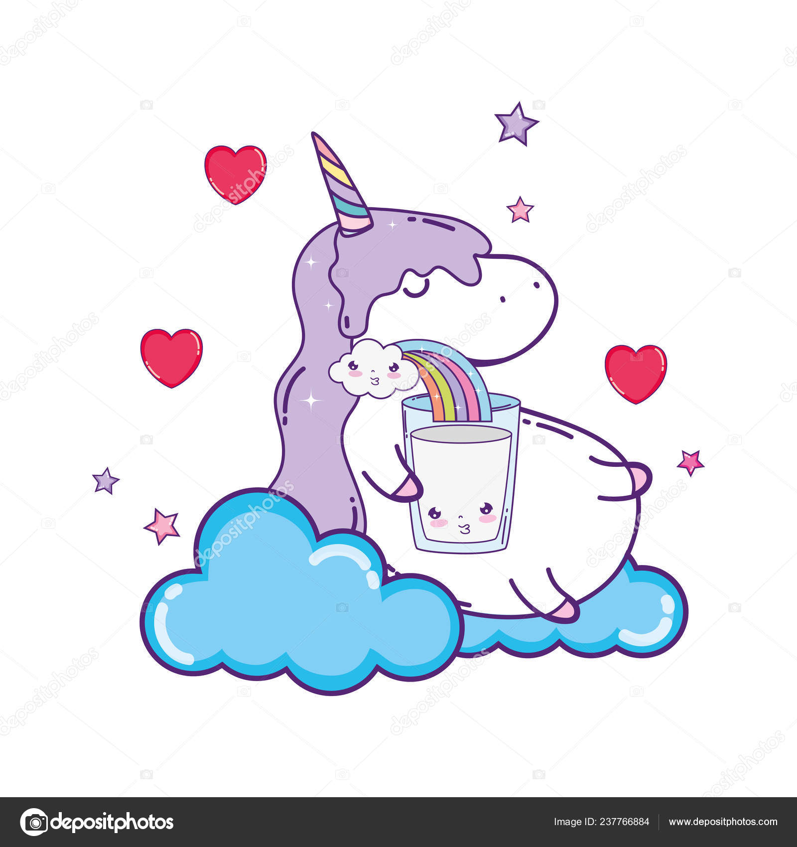 Arcobaleno Disegno Kawaii Unicorno Sveglio Con Nubi - Download