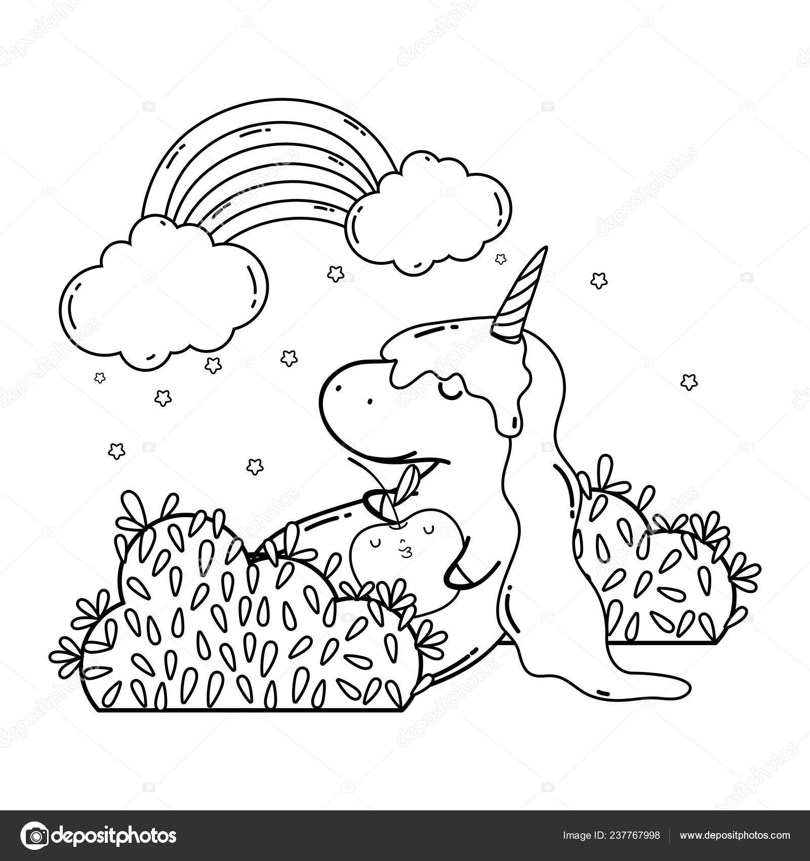 Unicorno Sveglio Con Nubi Arcobaleno Kawaii Disegno - Download