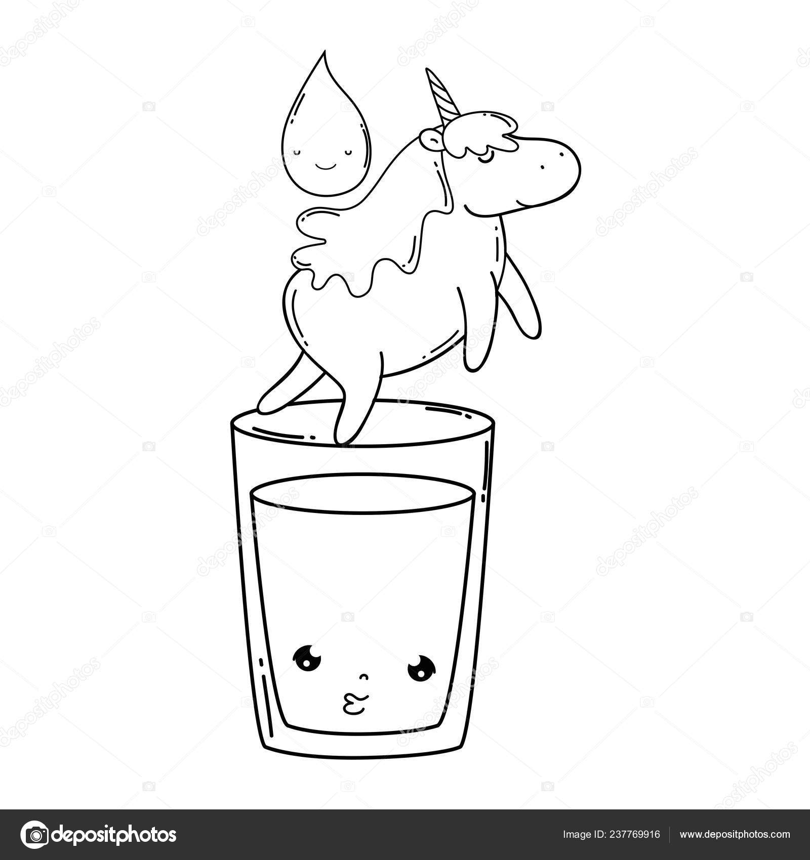 Illustrazione Water Kawaii Unicorno Sveglio Con Disegno - Download