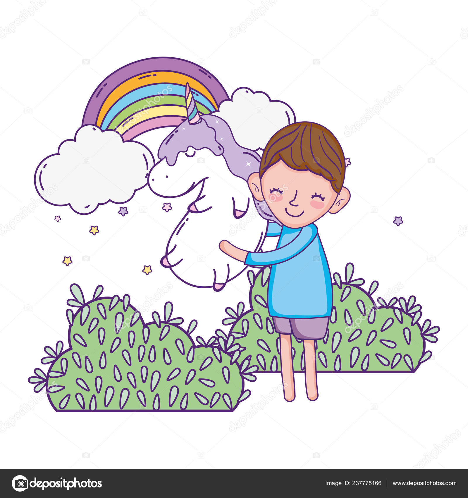 Ragazzino Con Disegno Illustrazione Vettoriale Unicorno - Download