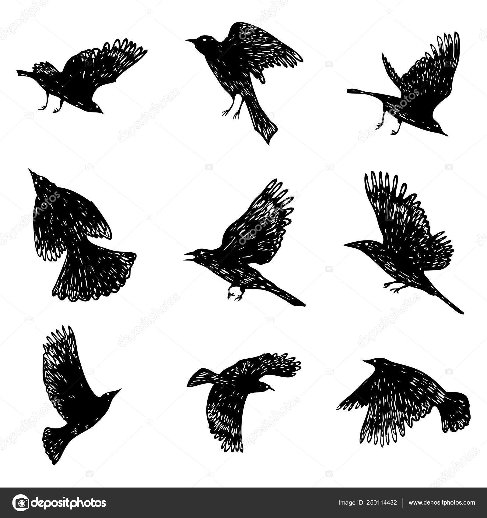 Set Di Stormo Di Uccelli Uccelli Che Volano I Corvi - Download