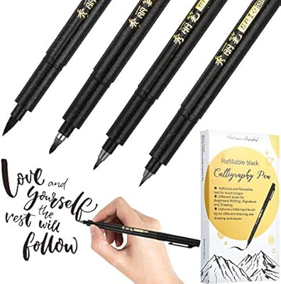 Penna Ricarica Calligrafia Penna Per Lettura 4 Taglie Penna Pennarello Nero Set Calligrafia Per Principianti Scrittura Firma Illustrazione Disegno - Download