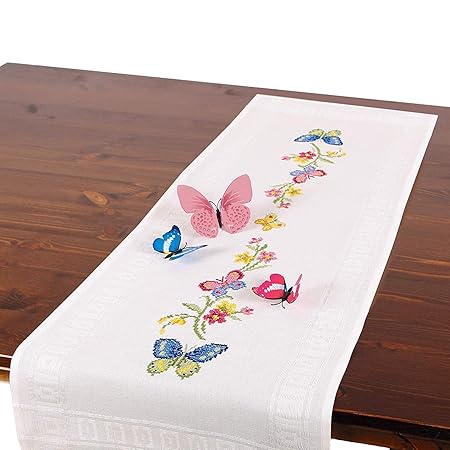 Tischdeckenshop24 Kit Da Ricamo Farfalla Runner Da Tavola Set Completo Per Tovaglia Da Ricamare Con Disegno Prestampato Set Da Ricamo Con Disegno - Download