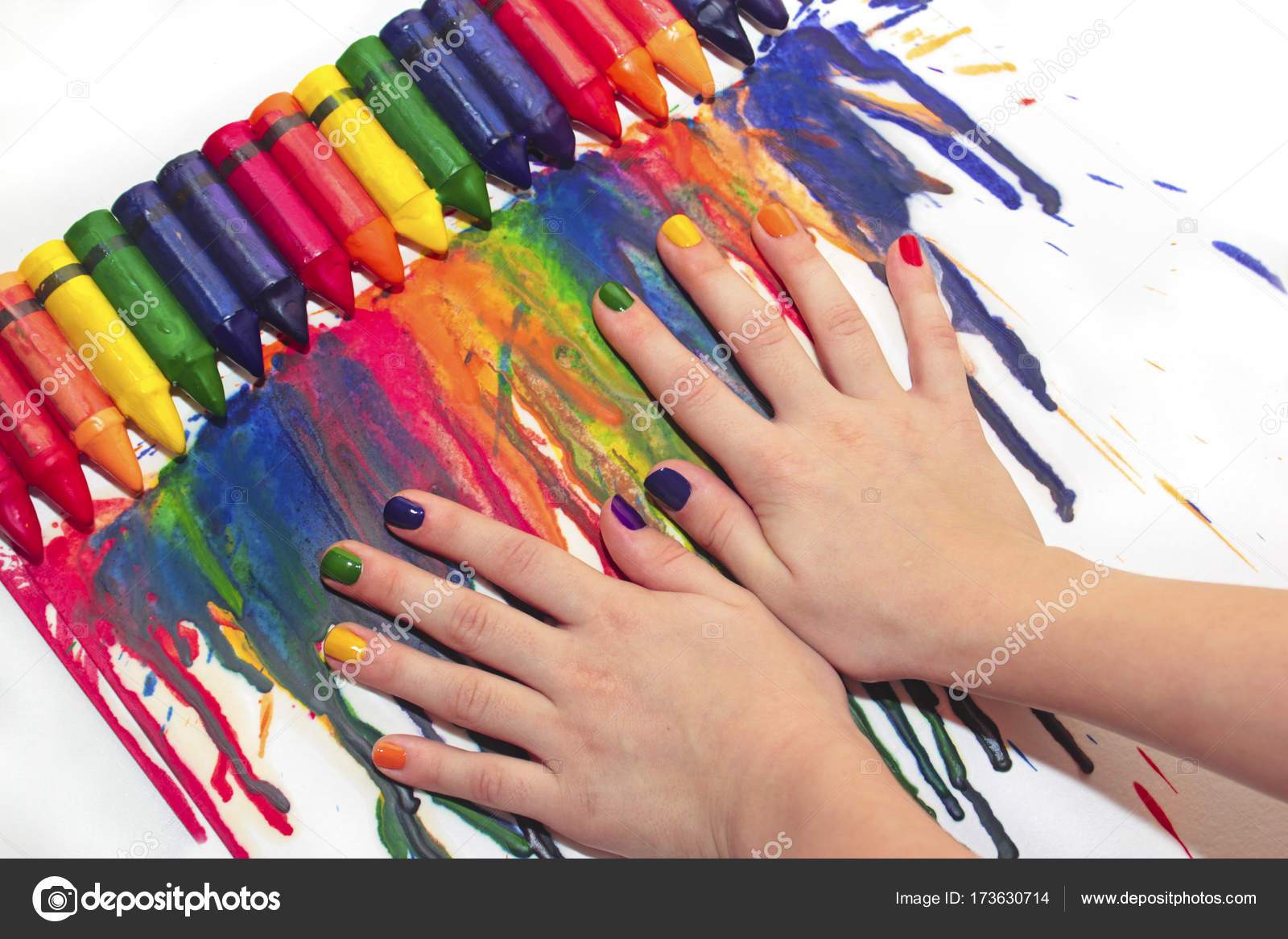 Manicure Per Bambini Misti Arcobaleno E Disegno Foto - Download