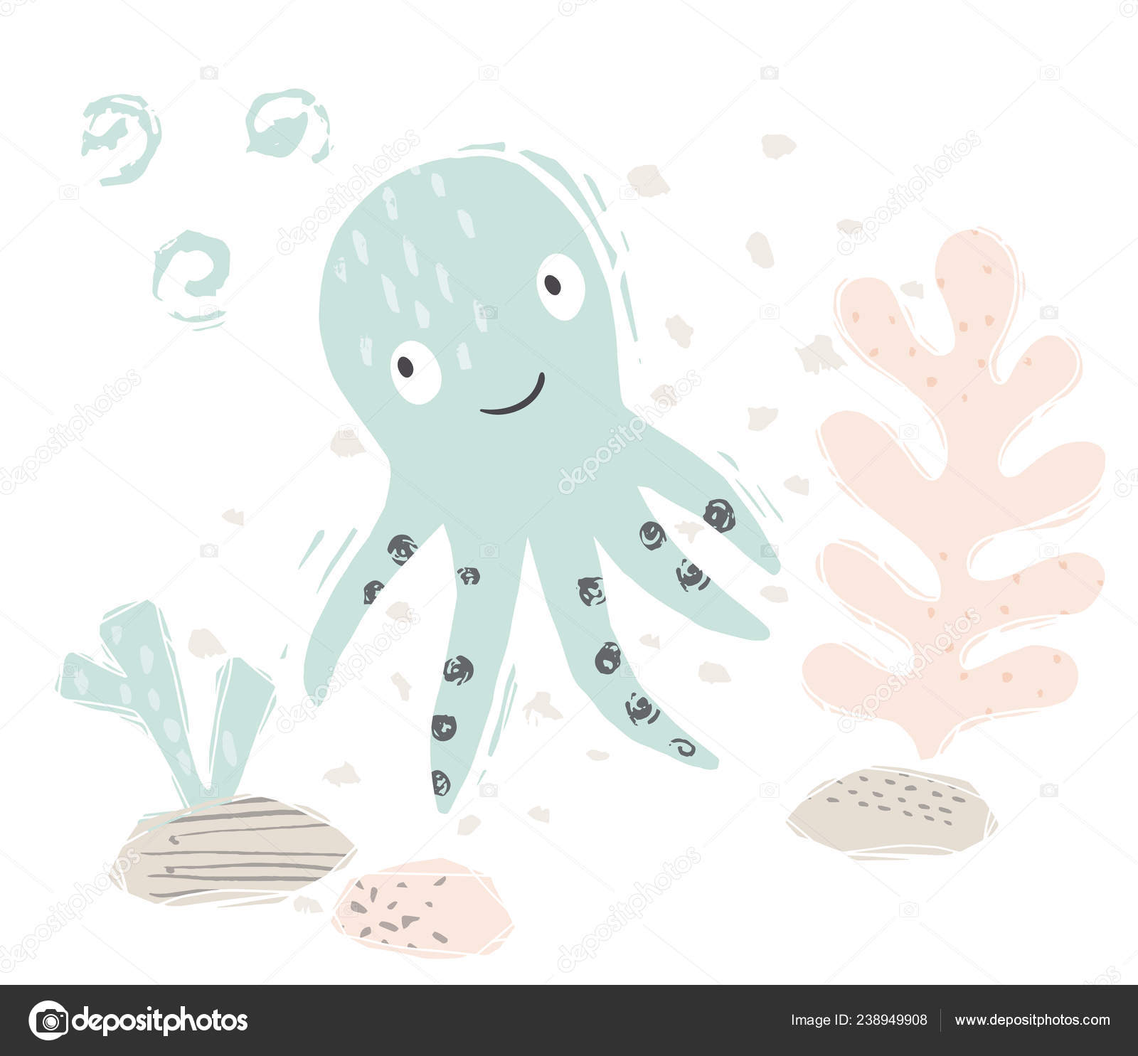 Stampa Polpo Bambino Sveglio Animale Di Mare Dolce - Download