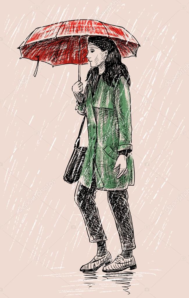 Disegni Di Persone Sotto La Pioggia Ragazza Sotto La - Download