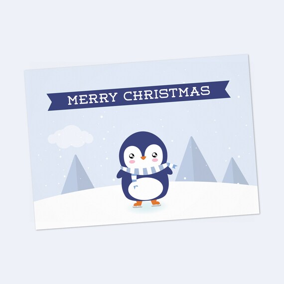 Cute Penguin Merry Christmas Card Pdf Diy 6x4 Inch - Download