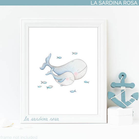 Balena Acquerello Poster Cameretta Bambini Tema Nautico Quadretto Camera Bimbi Stampa Balena Disegni Per Bambini - Download