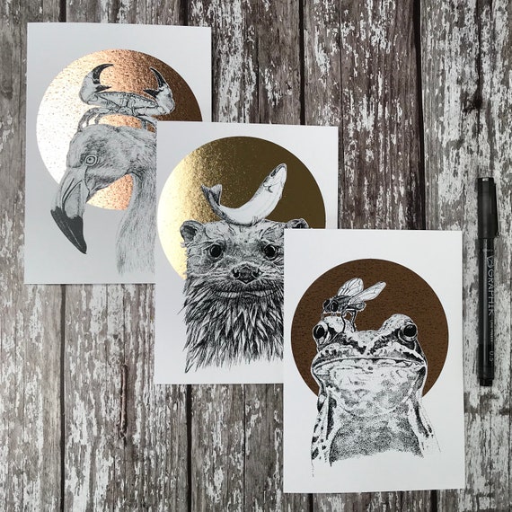 Scelta Di 4 Carte Sventato Da 18 Disegni Di Animali Selvatici Basato Su Miei Disegni A Inchiostro Originale - Download