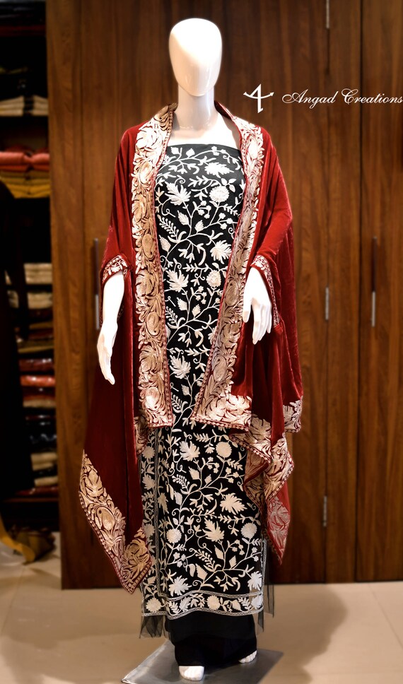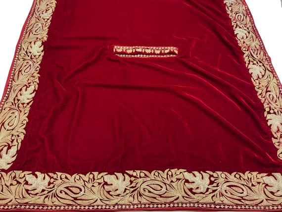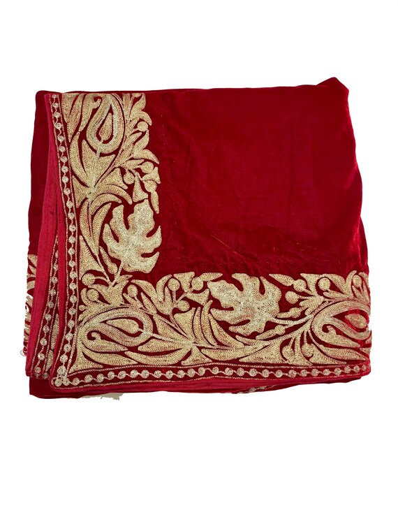 Del Capo Di Velluto Rosso Disegno Paisley Chinar Donna Scialle Velluto Rosso Ricamato Ha Rubato Kashmir Zari Lavoro Poncho Ricamo Tilla D Oro - Download