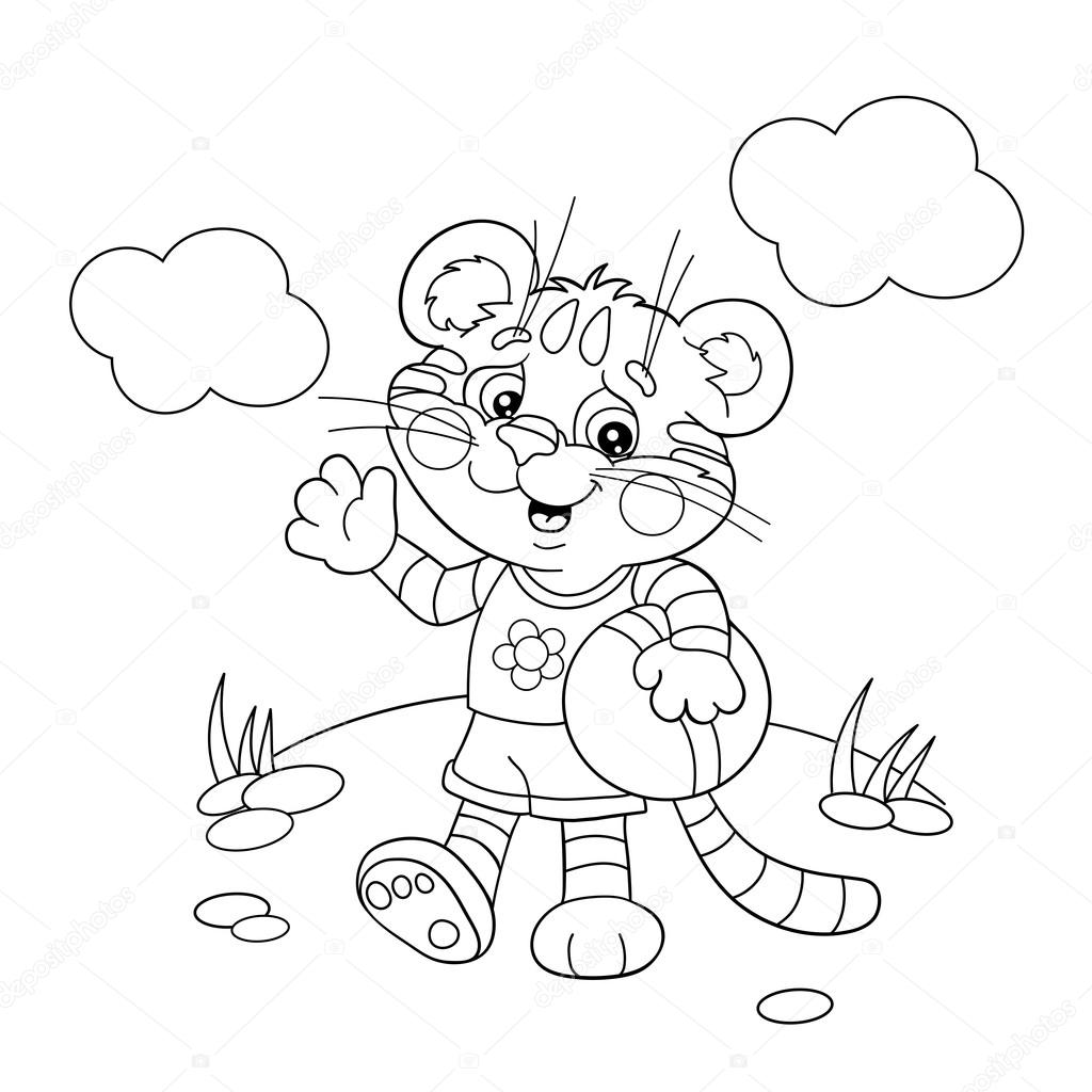 Disegni Da Colorare Pagina Muta Di Una Piccola Tigre Con Una - Download